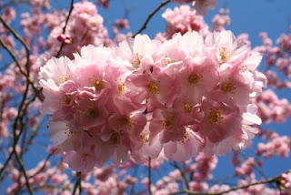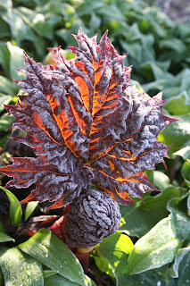 This young Rheum palmatum shoot looked lovely in the frost and seems none the worse for its chilling. On the other side of the garden the cherry was humming with bumblebees making the most of the spring sunshine.