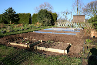 I do like a self-imposed deadline. I doubt I would get anything done without one, in truth. I chose this week as 'Veg Week' last autumn and thought I'd get a demonstration veg plot ready to plant up during the week. Well what do you know, I finished it today, right on cue.