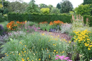 So after almost three weeks out of touch at Tatton Show, it's been lovely to have a few clear days in the garden. Peter and I (but mostly Peter) have worked our way round almost all of it, tidying, dead-heading, mowing, edging and selectively cutting back to help the garden reveal it's best. And the best by far are the two new borders. It's fun telling visitors that these were planted from scratch this April, using mostly small plants from the nursery or seeds sown this spring. They are always slightly incredulous - understandably. It's not perfect - I'll move some plants for next year and change one or two things, but overall they do look great.