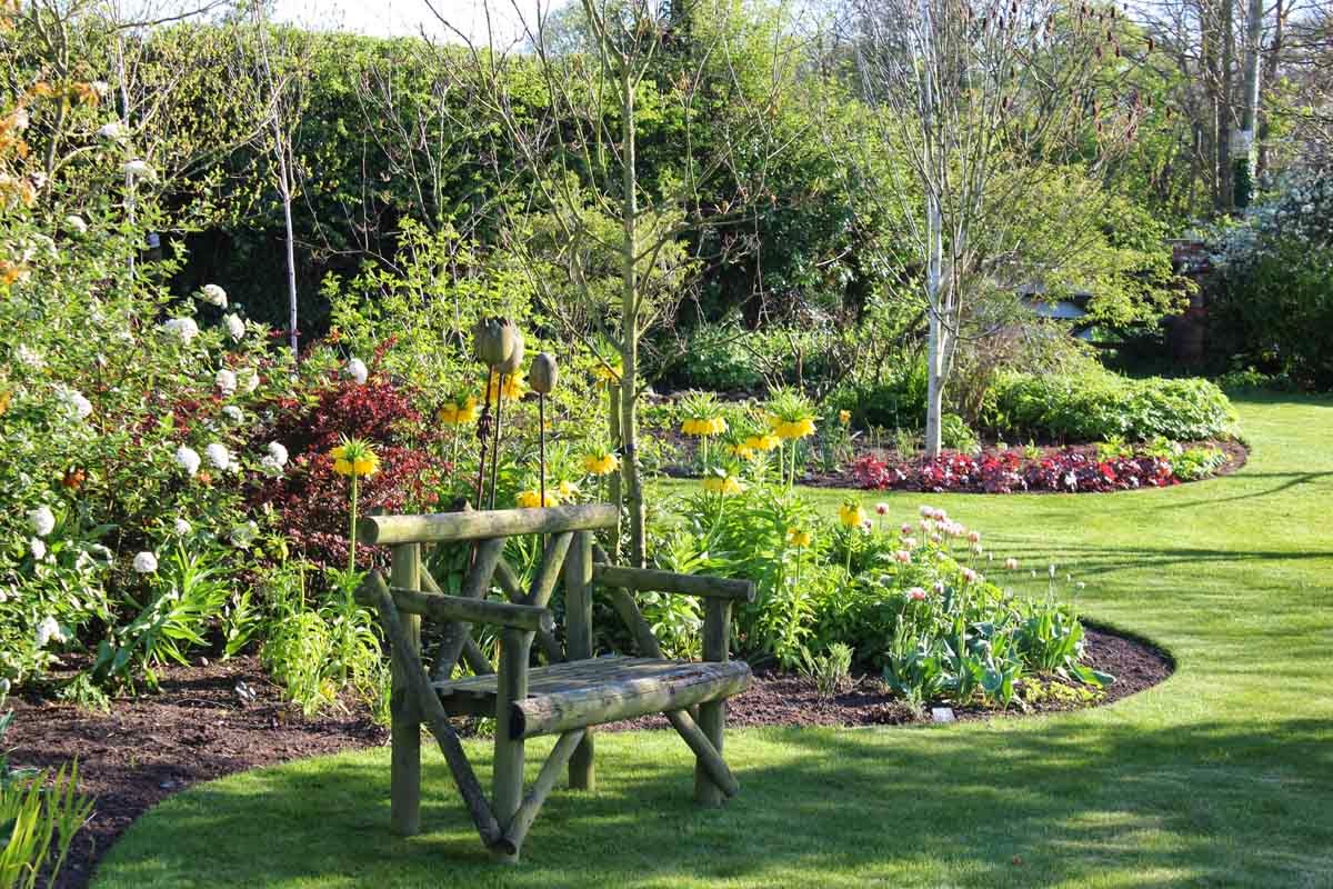 A bit of a feel of how the middle part of the garden looks in spring - curvy borders linked with grass paths and places to stop and sit down. In summer these borders will be voluptuously full.