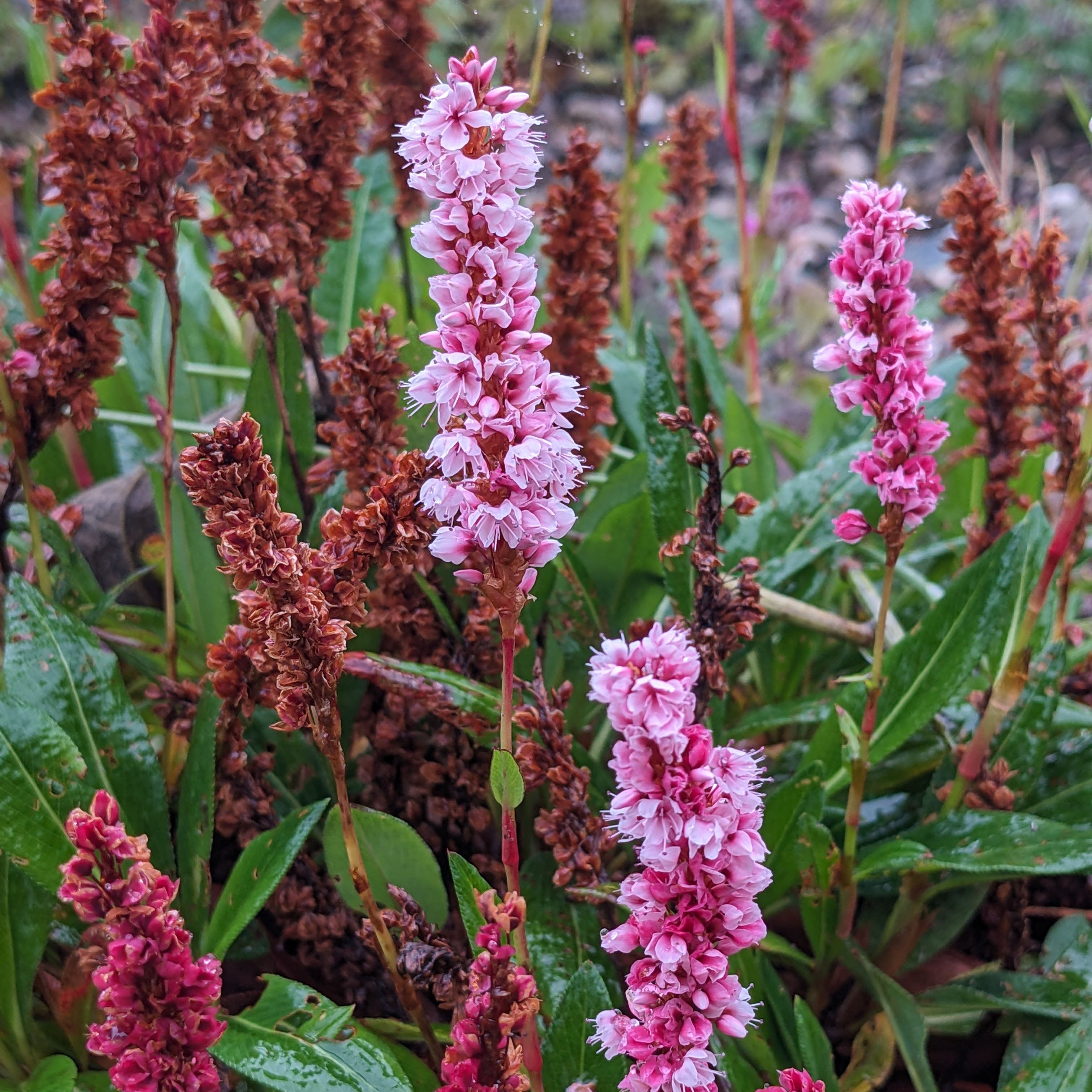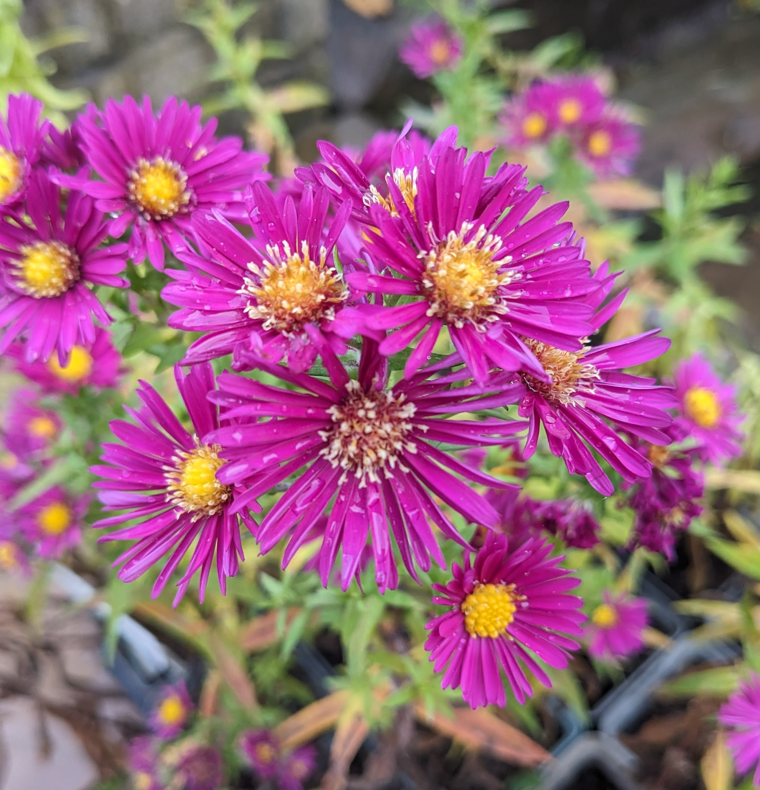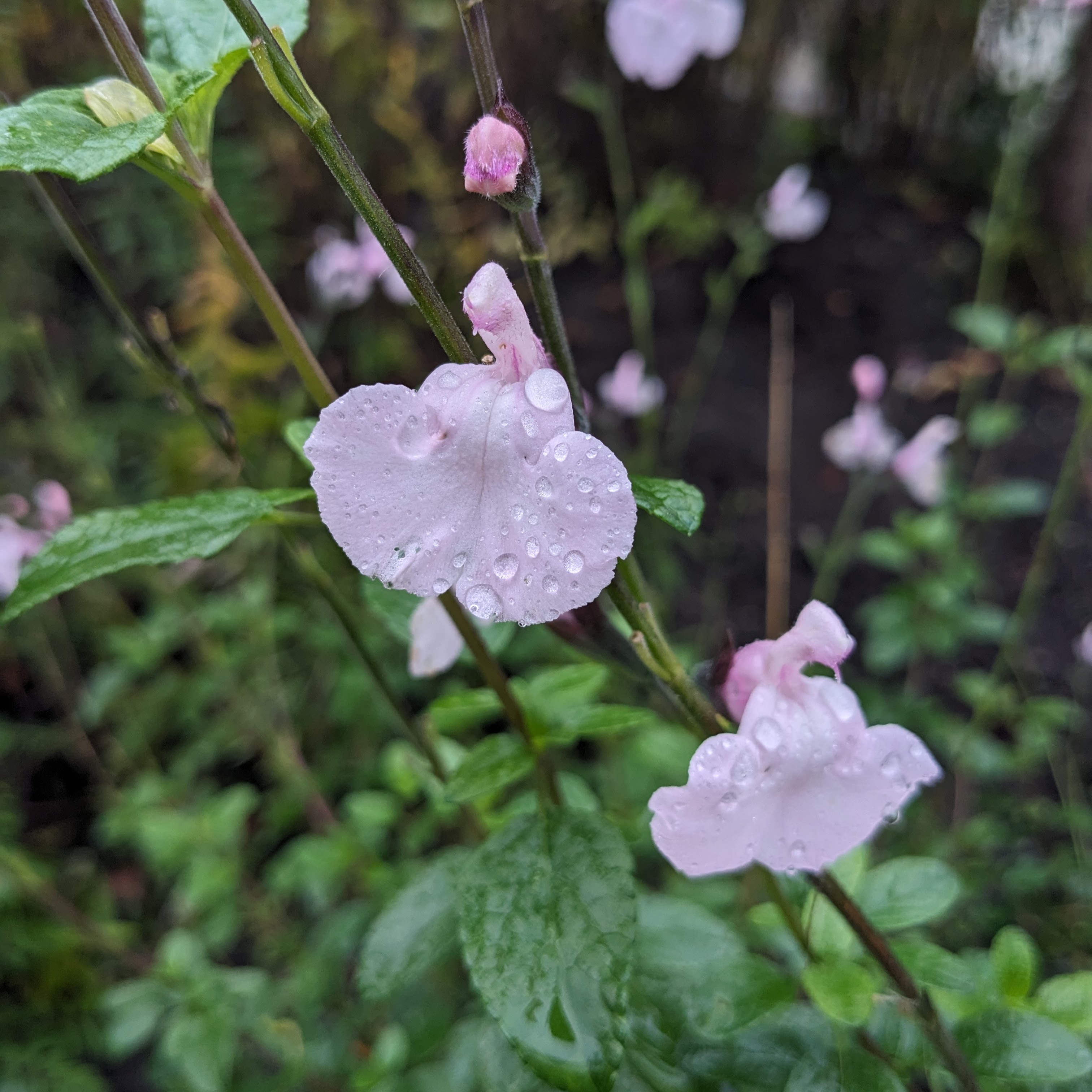 These things keep us going, along with the cheery daily conversation and laughter among our merry little band as we go about our days here. This, and the plants still flowering their socks off despite the rain, and the tiny signs of new life already showing in some of the pots will keep body and soul together until spring.