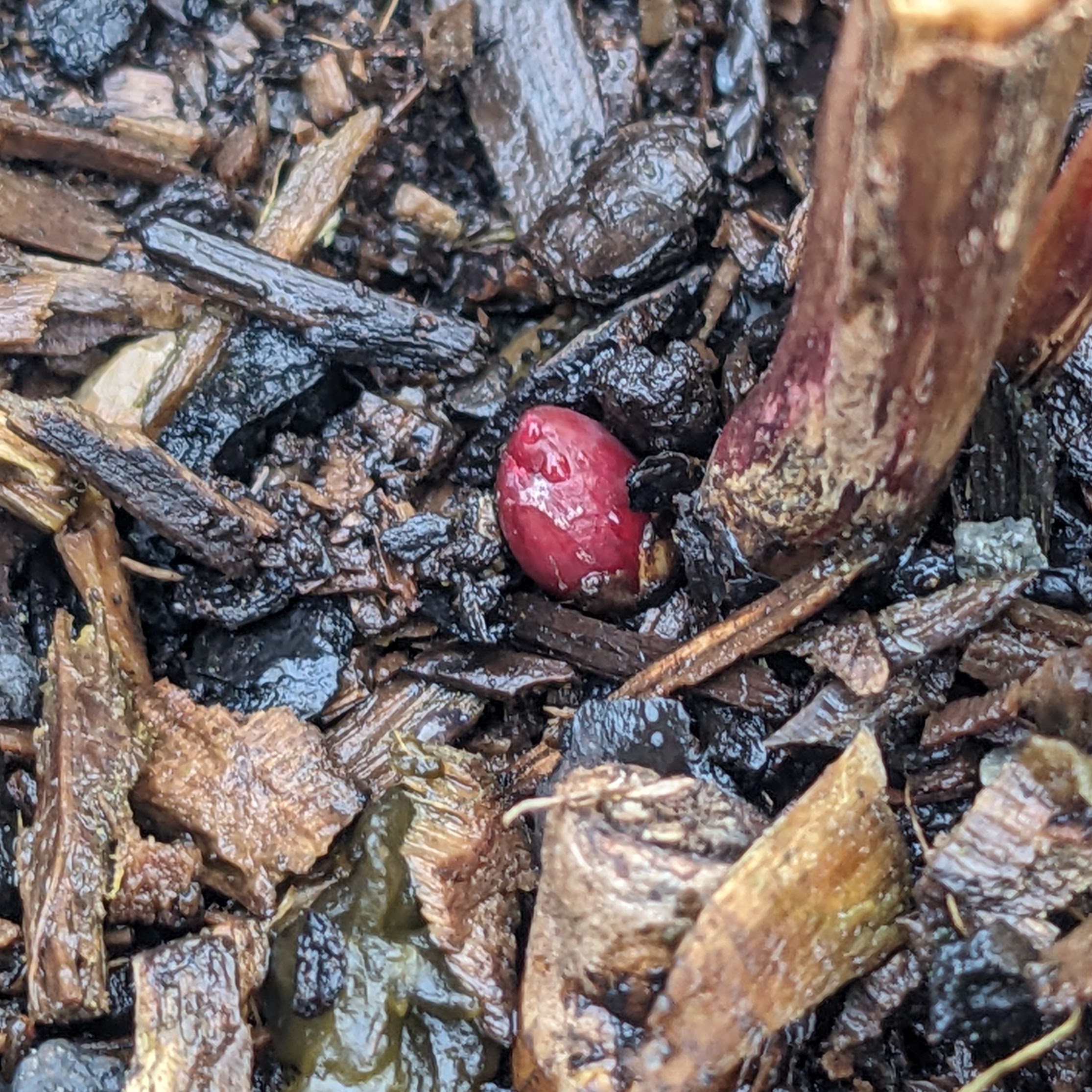 A Paeony bud, just emerging - a reassuring sign of readiness for next year.