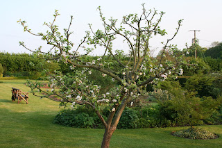 The apple trees are in blossom and it's good to see that I got the pruning right, since there is plenty of flower quite evenly spread, despite fairly extensive structural renovation. Thankfully the cold spell is over and fruit set should be good.