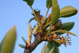 The Williams pear tree flowered a week ago, just after the last cold spell. It seems to have set fruit beautifully.