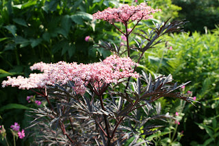 Sambucus 'Black Lace' looking seductively lovely in the sunlight.