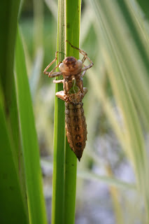 The pond has come alive with damsel flies and dragonflies. I spotted several empty dragonfly larvae husks on reeds - this one was the easiest to photograph. Haven't seen the hatchlings yet though.