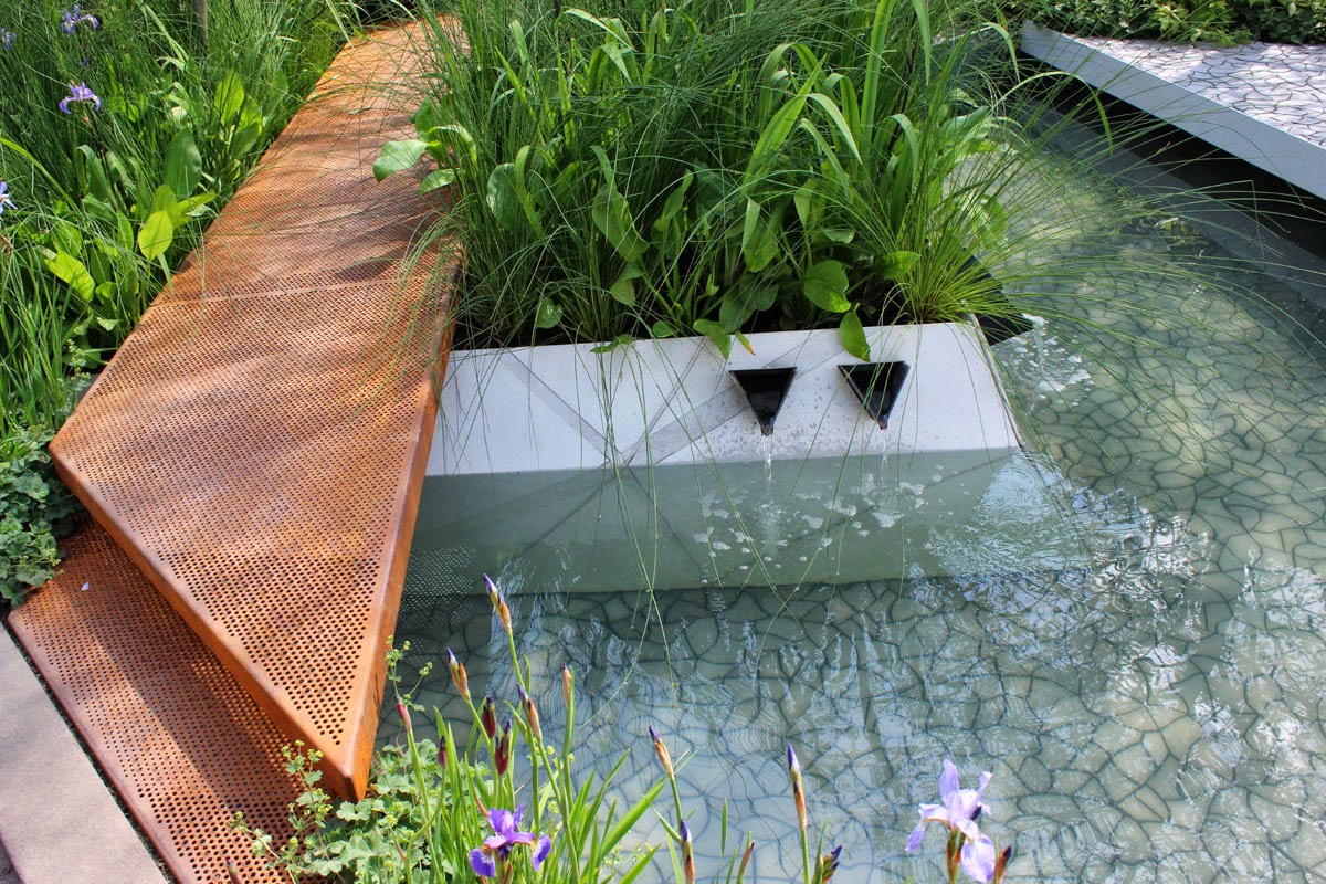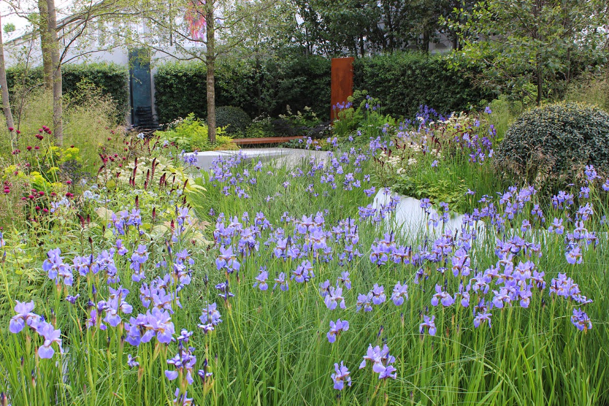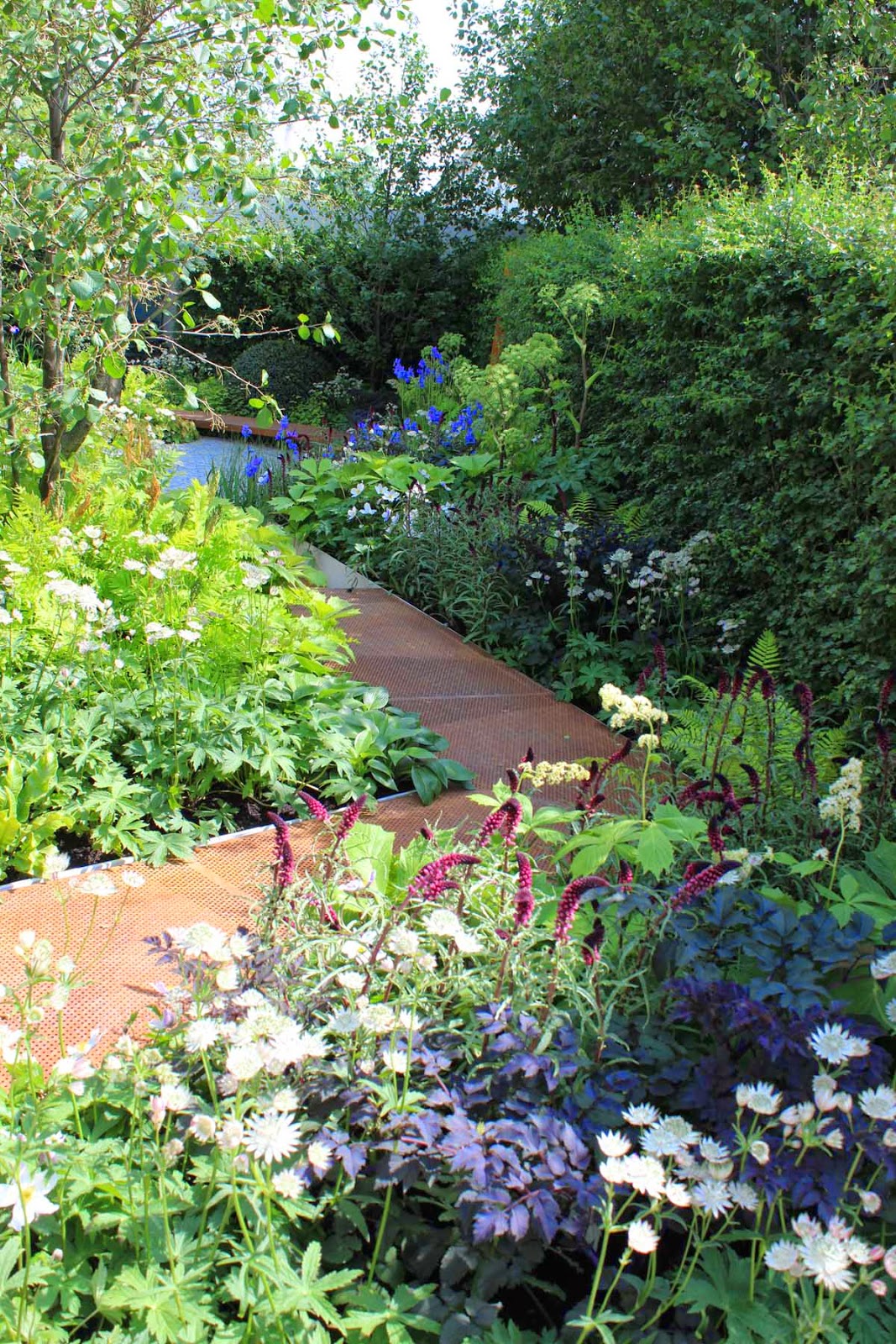 Youthful designers shone at Chelsea this year and none shone brighter than Hugo Bugg, winner of Young Designer of the Year at Tatton Show and now the youngest ever gold medal winner at Chelsea. I had no advance doubts about the colour of his medal. OK, so the river of blue irises won't flower for long, but it was a lovely visual effect. And the overall design and planting was very strong indeed. I loved the triangular motif running through it.