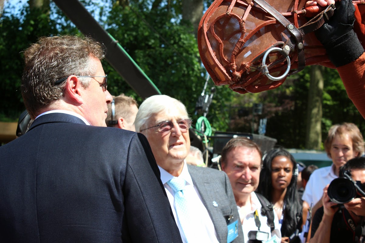 Look just to the left of the horse's muzzle. Yep, that's Michael Parkinson. And he's talking to...