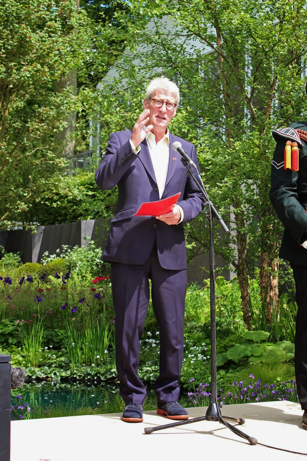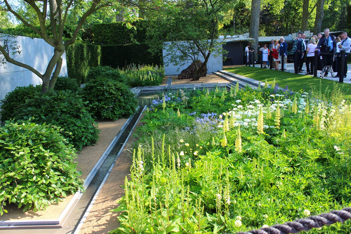 As for the garden itself, it was a sobering and beautifully executed affair with a wildflower mound at one end and a pool formed from a shell crater at the other end. Primarily designed to deliver a message, it had the great, the good and the funny at its behest, reading moving WW1 poetry from a podium at intervals through the day.