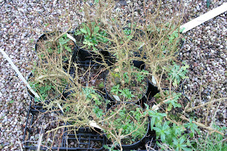 It seems ages since my last post here, but I do have a good excuse. I've been at the new nursery 2 or 3 days a week transforming weed-riddled, pot-bound plants like these: