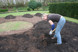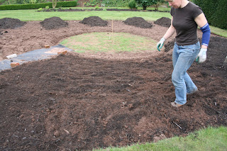The soil is pretty good under the old turf - sandy but enough clay to keep it moist. What it lacks is organic matter so I've decided to work a layer of the mulch into the top few inches to open it up a bit. I'll add a dressing of fish, blood and bone when we plant it up.