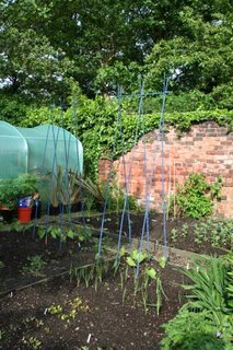 I'm trying to keep my small veg plot a bit prettier this year - hence the blue bean poles. And the bottom photo is Magnolia wilsonii at Dunham, taken last May when it wasn't raining...