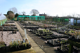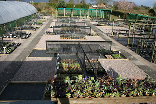 It's also great to hear visitors say that the nursery looks better, so for those of you too far away to come, or who prefer the virtual experience, here's how the outdoor part of the nursery looks now. There's lots of space for the new plants which I'll bring out of the tunnels when this cold spell passes, but it does look smart and much more practical for plant management too, I hope. The black mesh screens are windbreaks and the plants are now on capillary fabric (mypex) instead of gravel which should reduce watering problems.