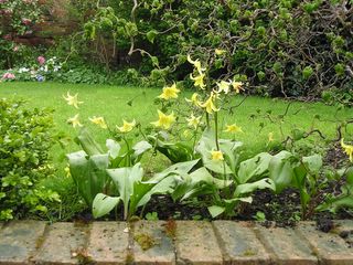 Erythroniums under Corylus 'Contorta'. Possibly my favourite right now.