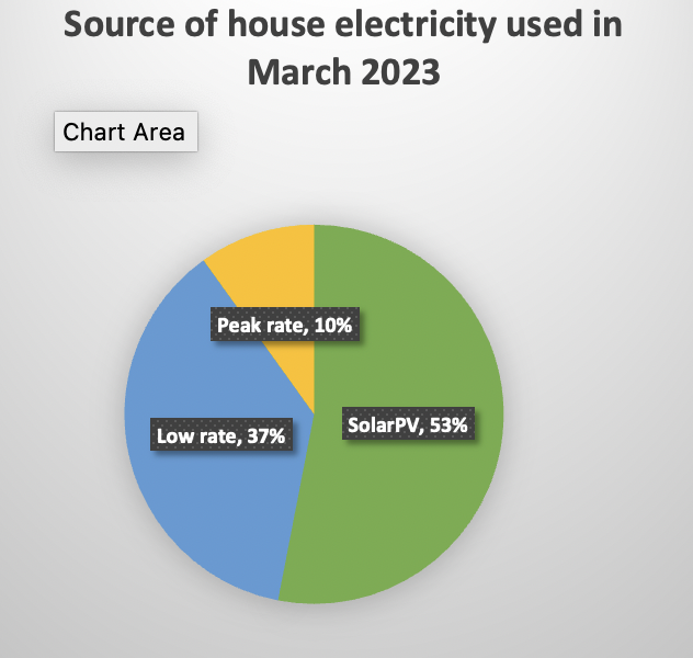 Twelve years ago (2011) I put solarPV panels on the south facing roof of my house. In June 2022 I added more to the east/west facing garage and in November ‘22 I installed batteries too. It’s 8am on a chilly April morning, the sun is only just up and it’s -1C outside. My solar panels are already producing enough electricity to run the house. Fridge/freezer, wifi, this laptop etc…