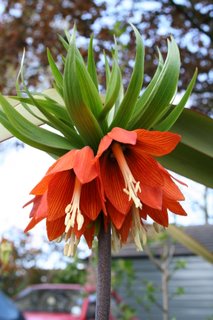 The Crown imperials are almost next to the orange tulips but I can't get them in the same shot without including daughter's red car...