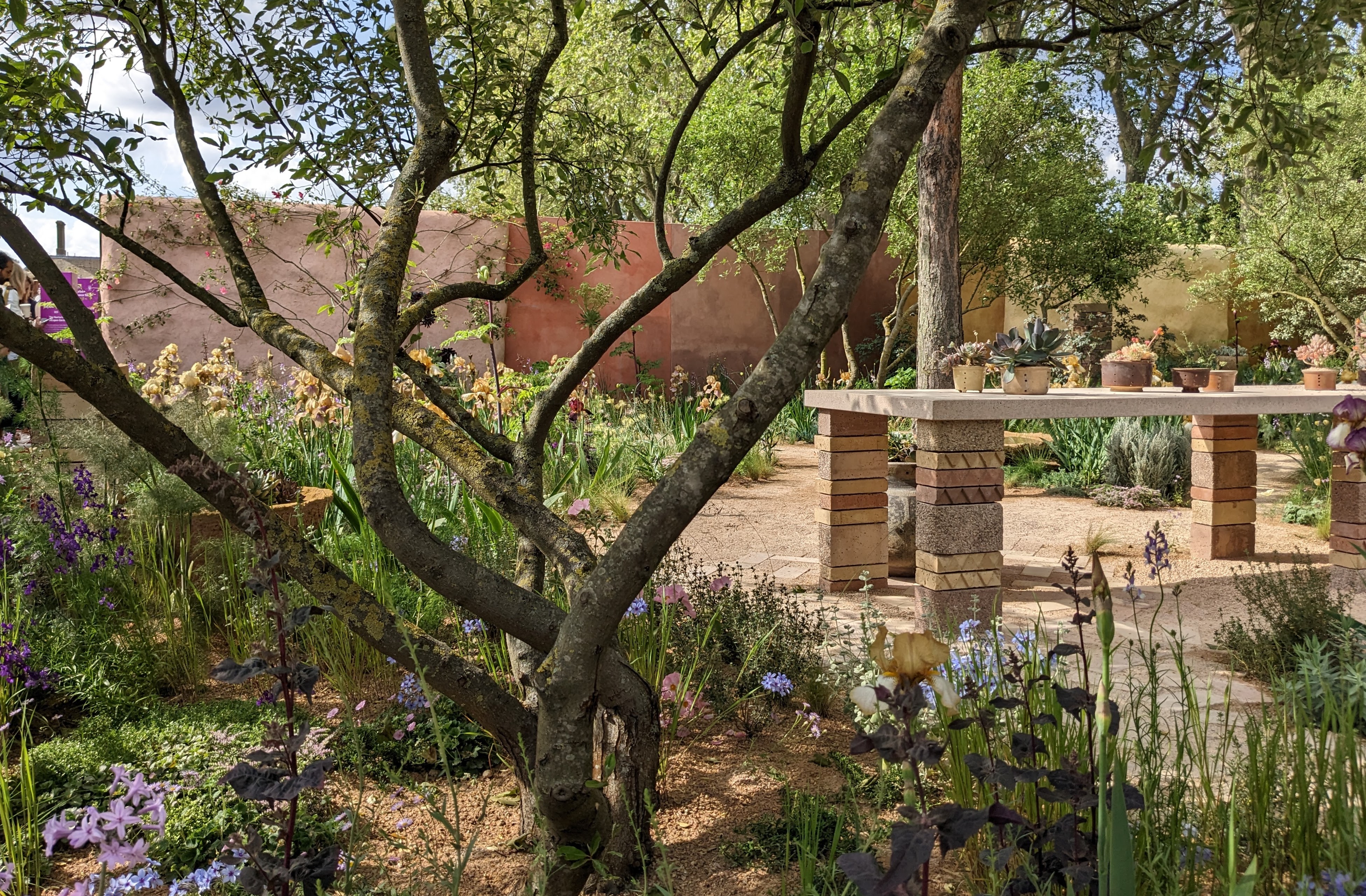 All the talk was about Sarah Price’s beautifully artistic garden celebrating Cedric Morris’s irises. The colouring in the hard landscaping and the planting was sublime and I was totally captivated by the shadow play of tree branches on the warm-toned gravels.