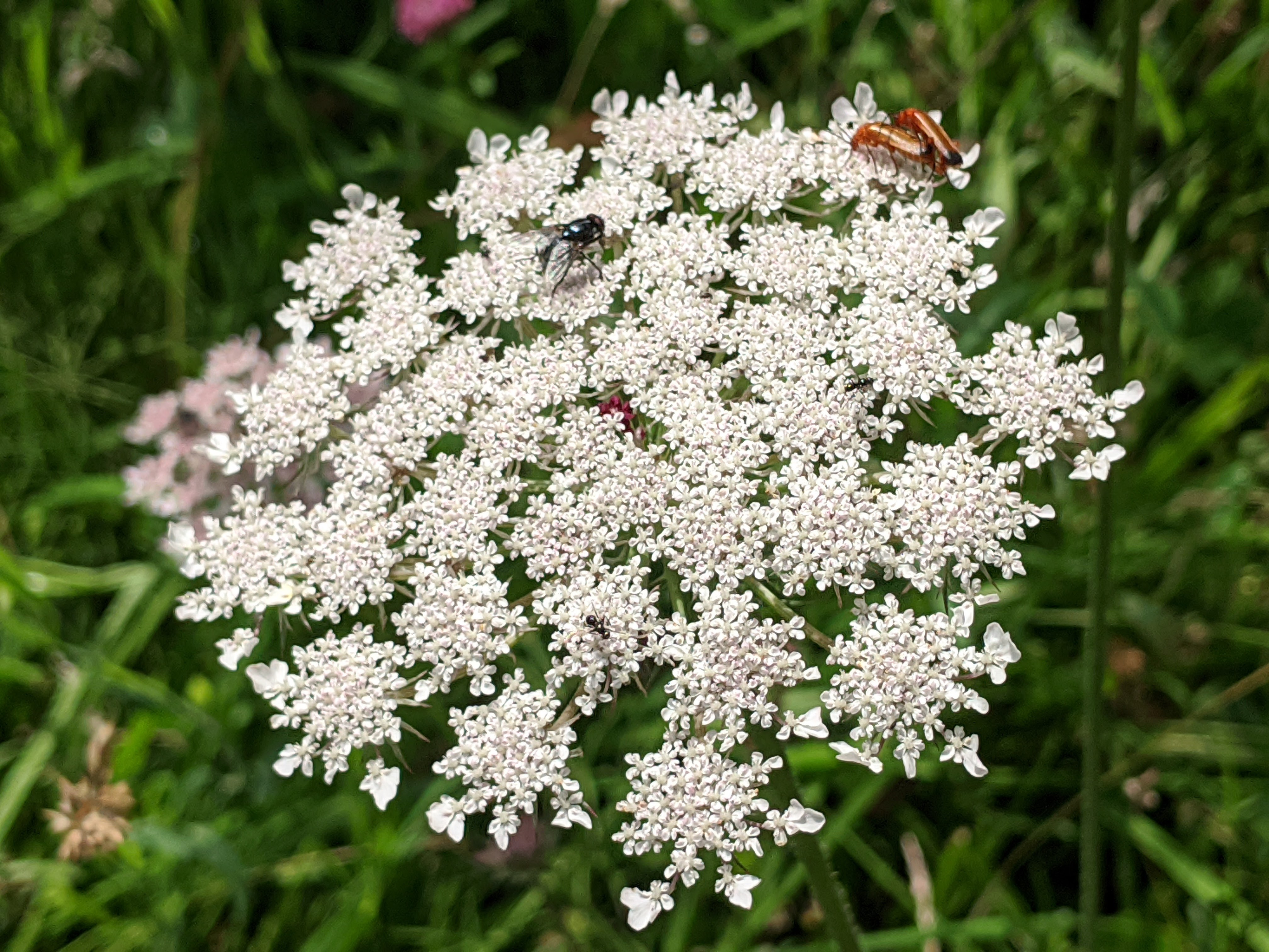 Many umbellifers, like the cow parsley, are biennial. They grow from seed in the first year, producing leaves and a long tap root. It’s the energy from this tap root that powers the early flowering stems in the second year. It’s a great strategy for attracting early pollinators, giving enough time to set fresh seed before winter sets in. Carrots and parsnips are biennials and produce beautiful flat flowerheads if you don’t get round to harvesting them.
