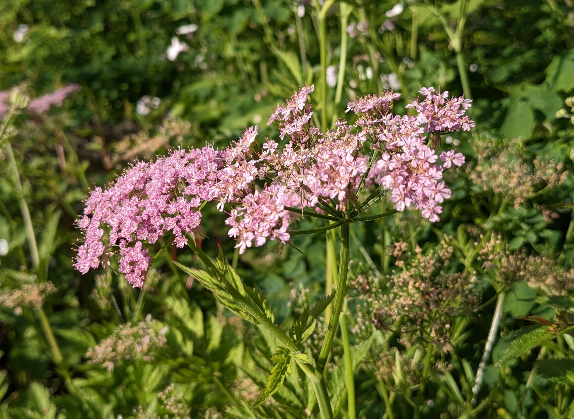 Perennials are my thing though and one of the best is in flower now - a gorgeously elegant plant weighed down by its hefty name, Chaerophyllum hirsuitum ‘Roseum’. It’s a true perennial, slowly creating a mat of ferny, aromatic leaves. The flowerheads stand around 2ft high so its perfect for edging partly shaded borders.