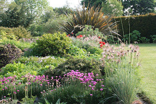 Anyway, enough nerdy weather talk. The garden is looking lovely now, still fresh with it's spring growth but full enough to look sumptuous, especially in the tight knit areas close to the house. In a break from my usual habit, I'll post some vistas today rather than my more familiar close-ups.