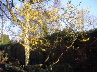 For Den - Hamamellis mollis in full flower. It's about 8ft high and wide, but this tree is at least 20 years old and now grows very slowly. The twigs I cut for scent are enough pruning to keep it the same size.