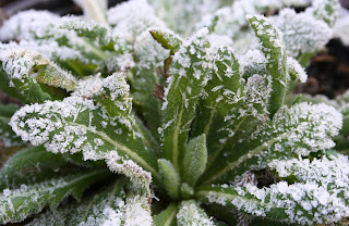 Papaver atlanticum's hairy leaves holding the frost beautifully