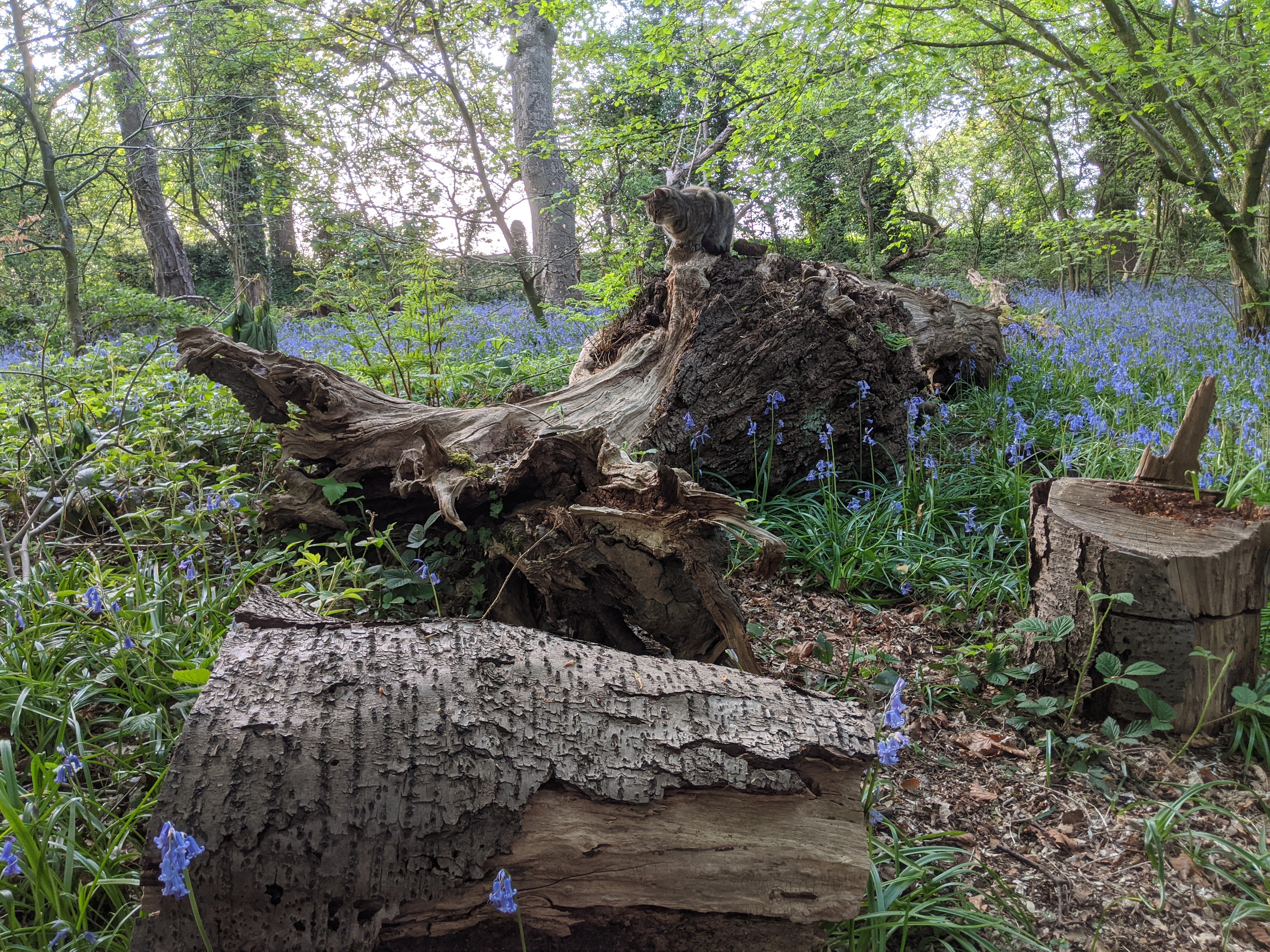 In a normal year, the risk of this tree falling would have meant closing the woods to visitors, but you might have spotted that this all takes place in spring 2020, during the first pandemic lockdown. The woods were closed anyway - ours were the only footsteps that troubled it in that quiet, long, dry spring. I must admit, we loved the tranquility of it.