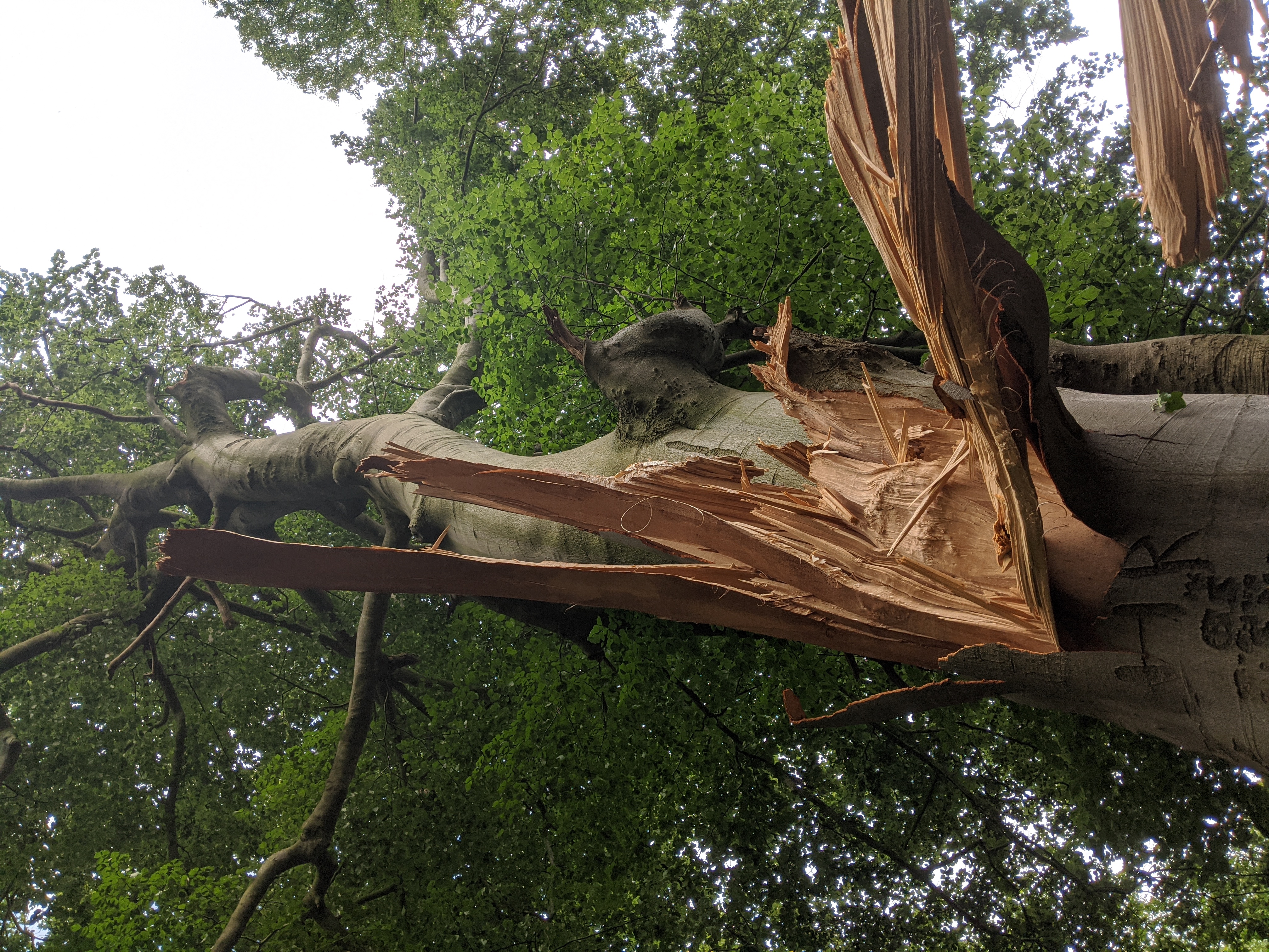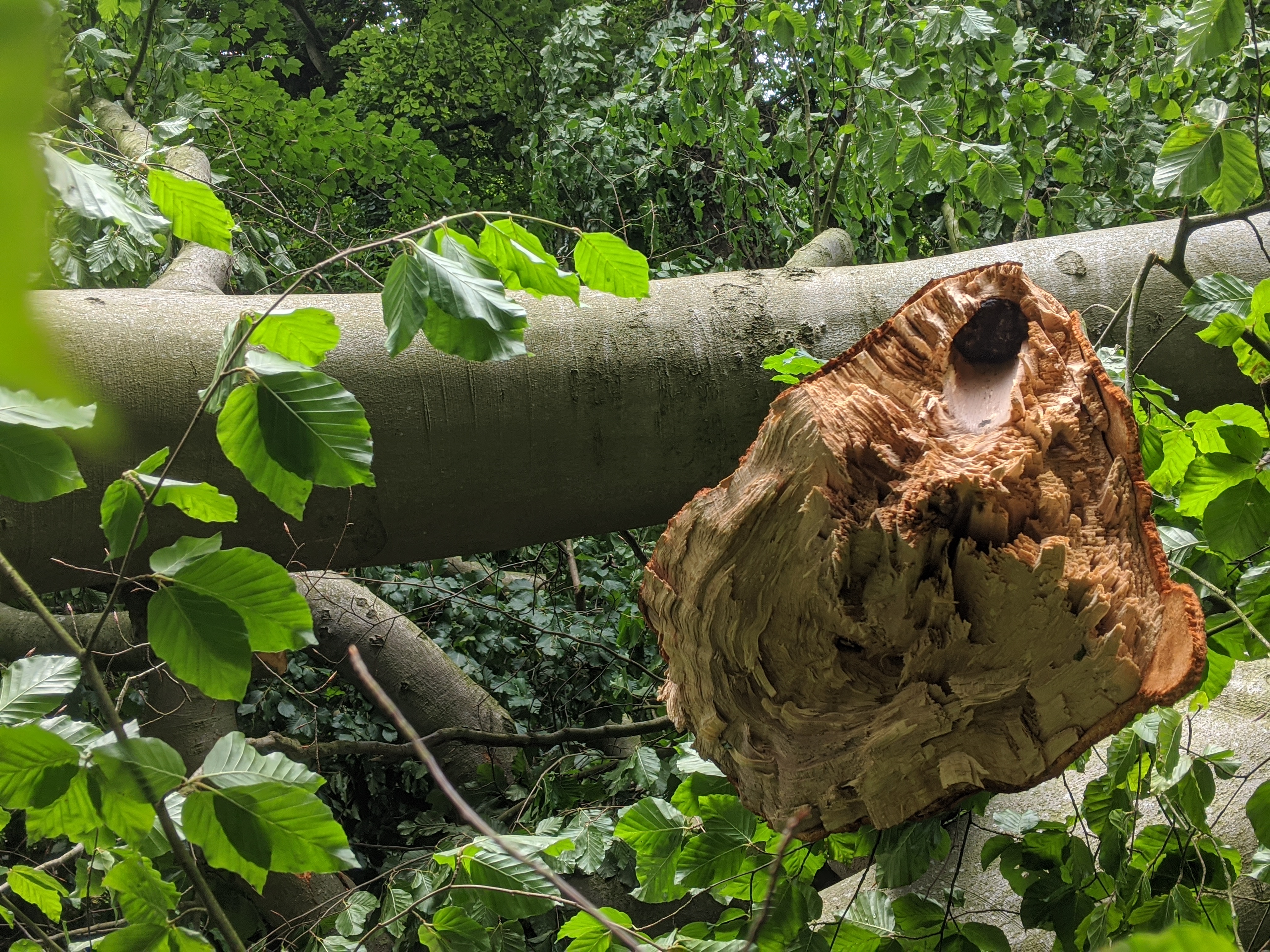 The real question is what we should do, if anything at all. No doubt this has happened before. But usually a large tree weakens for several years and others take the opportunity to steal its light. By the time it falls the hole it leaves behind is insignificant and soon heals over. This time it’s different. This tree was still fully leafed, and enormous. The gap in the canopy is vast.