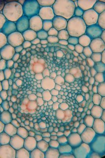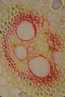 There's not much to photograph in the garden - the last two weeks have been wet, windy and gloomy. But as it happens our college session this week was spent peering through the microscopes at plant stems, leaves and roots. On a hunch, I got my camera out and pointed it down the microscope lens. To my amazement, some of them came out quite well and are wierdly beautiful. Here's the best of them: