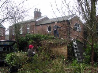 Yours truly on the newly uncovered shed. DB in a fetching hat taking a break from tip duty.