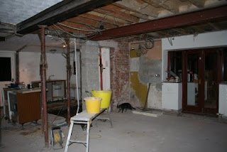 So while I'm mentally redesigning the garden, we've started on the house. Changing buildings is a lot faster of course - walls grow more quickly than trees. Like all major renovations, things get much worse before they get better. And it doesn't get much worse than this. This was our kitchen two weeks ago. The new one will go in a room which hasn't been created yet. So we are without a kitchen until February. But like the garden, big changes take time - we can wait.