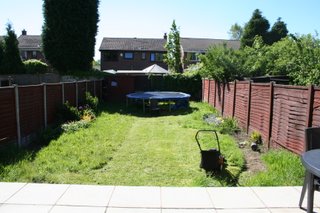 The particular design challenges presented by this garden include an large blue trampoline, a 2ft drop from the patio to the lawn and an ugly fence. All of these are staying, although the fence is being repainted, so they are being worked in. The borders still need more planting, and a step is missing from the patio, but things are looking better. The bottom photo is as it was last March. The middle one is as it was yesterday morning and the top one as it is now. It's taking shape and is fit for a party, that's the main thing.
