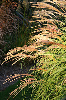 On Gardener's World last night, Joe Swift recommended Miscanthus 'Yakushimo Dwarf' and I completely agree. The seed heads are held at about 4' instead of the typical 6-7' of most Miscanthus bringing it to eye level. It is graceful, well-behaved and looks lovely in sunshine.