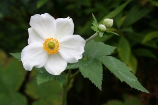 Anemone 'Honorine Jobert'. Some find this plant invasive, but it's one of the few that is happy in my very dry shade.