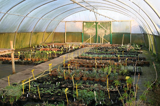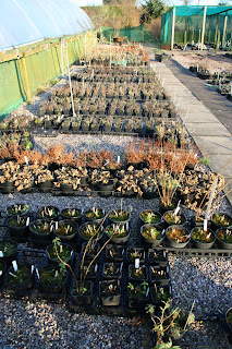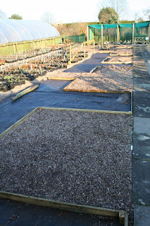 Although the frost has kept us out of the garden, we've found plenty to do on the nursery. Debbie has almost completely cleared out the potting shed, ready for a re-organisation. Although the pots in the polytunnels froze too on several nights, it's been lovely in there during the day and these now look very ship-shape with everything tidy and labelled.