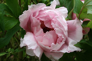 Another beauty in the garden today is this fabulous tree paeony, with flowers the size of saucers. Impressive, showy and large, but for me knocked for six by the demure blue poppy.
