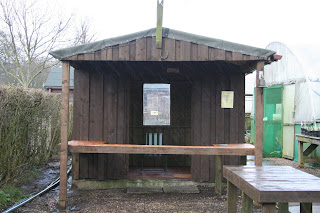 For those of you who know me from my former working life, may I proudly present my new office. It is spacious, if a little spartan, and has the benefit of continuous fresh air ventilation. The horizontal hail is an optional extra. It's actually the sales hut, but it will double up as an outside office.