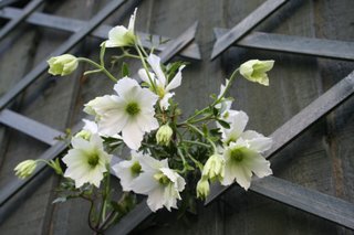Clematis 'Early Sensation' Its first buds were burned off by frost, so it's not that early, but I love the colour and the foliage is pretty.