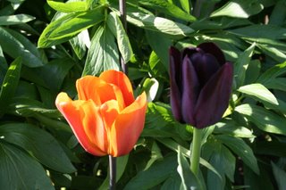 OK, so I do like orange and purple together. But I am desperately hoping that the orange tulips drop before the magenta peony behind it flowers.