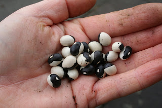 The gardens are looking really good now - all spick and span and neatly edged, mostly thanks to Peter and a relentless fortnight of edging and weeding. I've finally found a home in the garden for the Meconopsis and Trilliums and have planted up the cottage vegetable garden. I also spent a happy hour or so sowing beans in pots at the weekend and am especially taken with these 'Yin Yang' beans from South America. Aren't they fabulous?