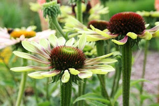 Much has been made of the comparative hardiness of Echinaceas lately. This is Green Envy. It's been in the garden for two years, and come through two very cold winters - down to -15C. The soil is light, but even so, I'm impressed. The pale one behind it is Fragrant Angel which has also done well.