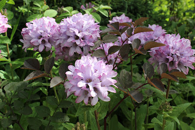 Elsewhere, this combination caught my eye - Campanula glomerata 'Caroline' - the perfect partner to the dark foliage of Angelica 'Vicar's Mead.