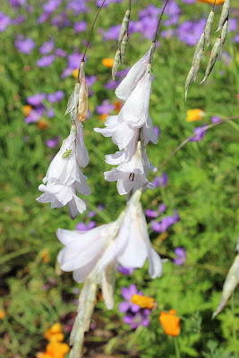 See that arching white flower this side of the border, dead centre on the photo? It's this stunning white Dierama. I don't know exactly which cultivar, but here's a close up: