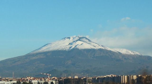 Finally - till next time when we may get to climb Mount Etna. Dave took this picture out of the car window on our way to Catania airport - it's as close as we got. She's smoking gently, innocently, but dangerously enough for our plane to give her a very wide berth indeed.