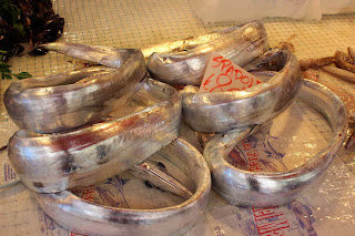 The fish stalls were astonishing - we failed to identify most of them and they were so fresh it was hard to believe they were dead. Their bright eyes gazed up at us, clearly pleading to be thrown back into the sea.