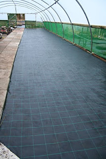 Well, I'm much happier now that I've got that out of my system. And much happier too that I'm off my backside and back in the nursery full time. The first delivery of 1500 bare root plants has arrived in fifty neat open-topped cardboard boxes. I am torn between delight at the prospect of their summer beauty and panic at the potting workload (it's just the first batch...). Each box is packed tight with mounds of pert little shoots standing proud of a spidery tangle of bare and rapidly drying roots. For now the boxes are stacked up somewhat precariously in the tea room because it's dark and cool in there. Tomorrow Janet and Sally start the marathon task of potting them up, so my job today was to lay a new floor in the back polytunnel ready for the newly potted plants to stand inside for a few weeks before facing the harsh world outside.
