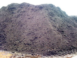 Head honcho composter Steve Kay showed me round the composting yard, with six long heaps of material, each one 10 foot hight and 100 feet long. Each heap is left to self-heat until it reaches the requisite temperature and is then turned by composting ace Jackie and her JCB and 'cooked' again six times until finally ready to meet the screening machine. This enormous device shakes the compost through a 1cm screen to produce a gorgeous black, crumbly material which smells and looks lovely. A sample gets sent off for lab testing for 'fines' and if passes it's approved for use. This picture is of the finished product. It's just fantastic stuff, apart from the tiny bits of plastic in it. And here's why.