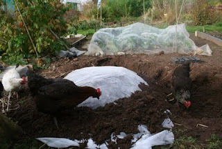 ...topped off with a mound of earth. Which would be just fine, except that the chickens can't resist newly turned soil...