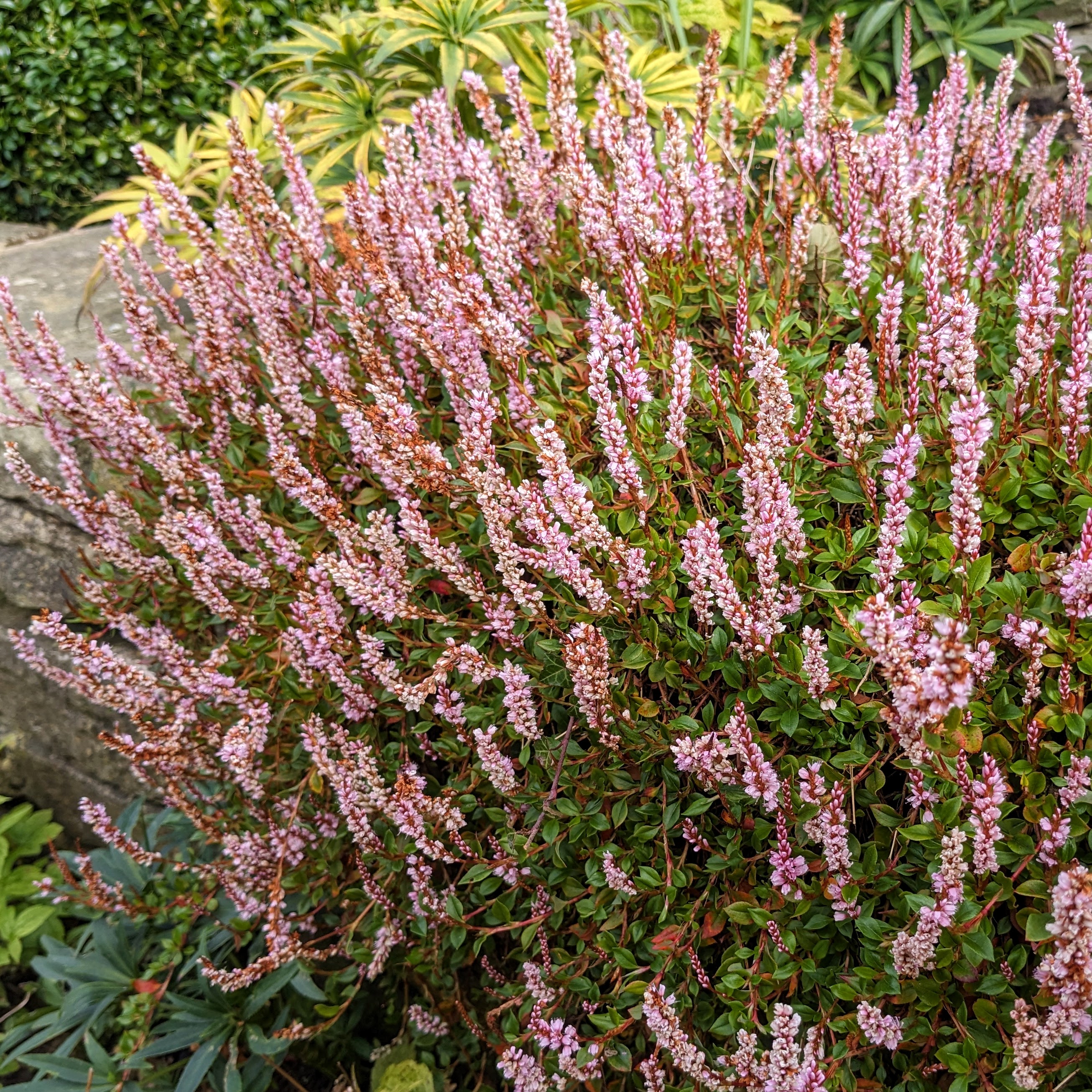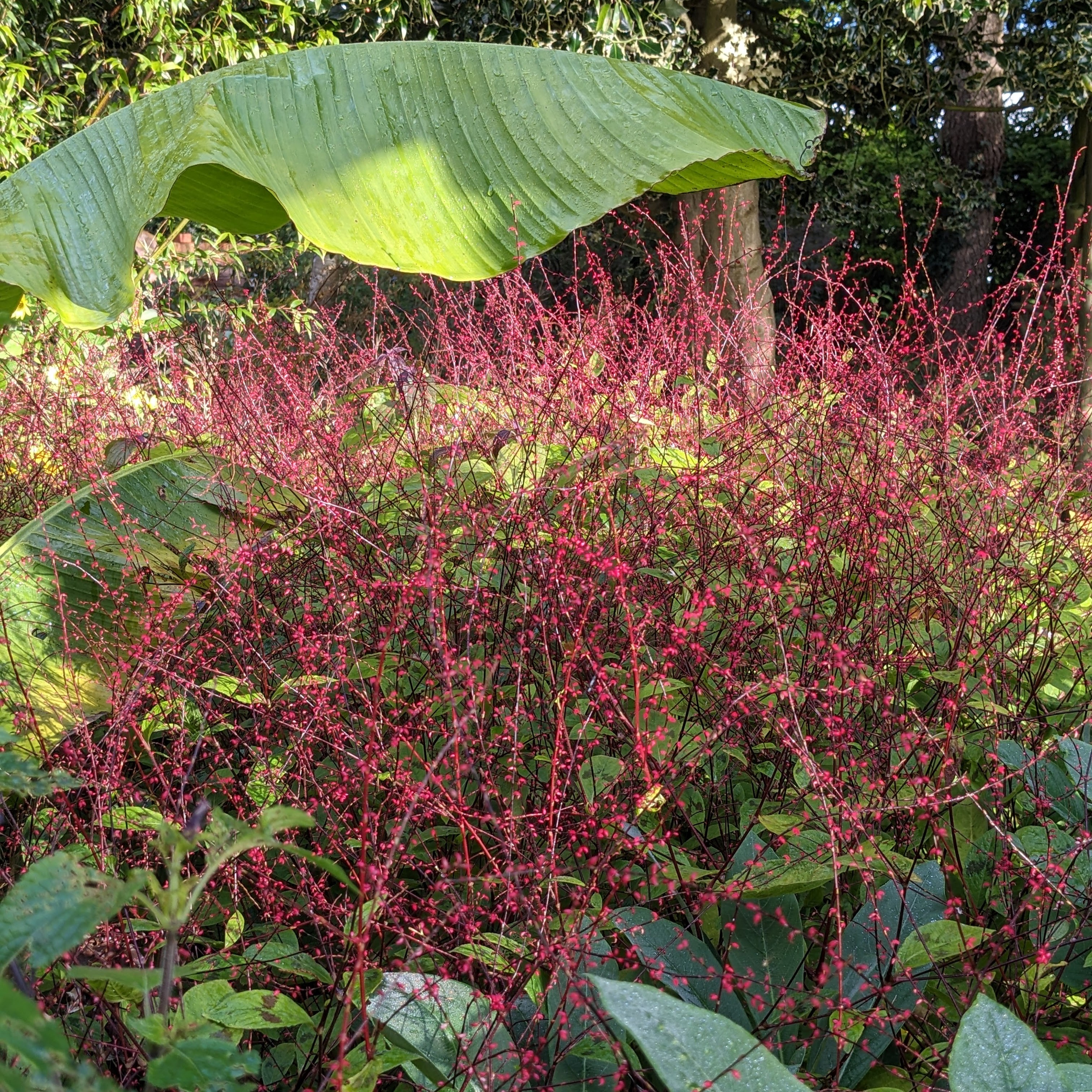 The leaves carry the characteristic ‘chevron’ markings of similar Persicarias, but in September, long wands of tiny, glowing, ruby flowers appear, each flower enclosing a little creamy seed. Backlit, the effect is spectacular, as if the air dances with tiny red fireflies.