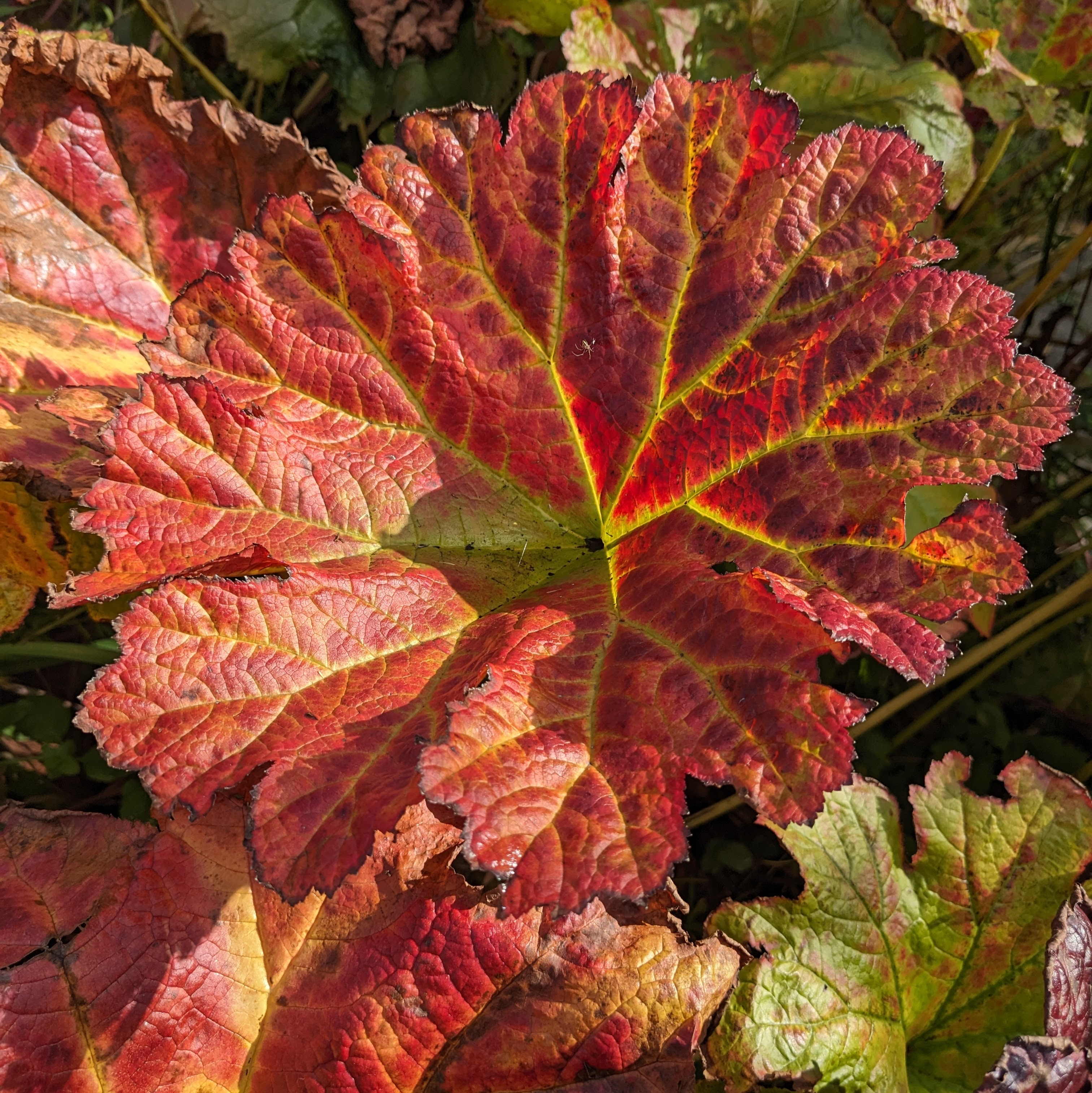 The light seems soft and diffuse so that everything glows evenly, simultaneously. It’s hard to explain and harder to describe. Perhaps the low sun lights up leaves from beneath rather than from above, sending colour bouncing upwards through the foliage. Whatever the cause, the effect is quite magical.